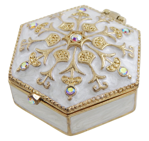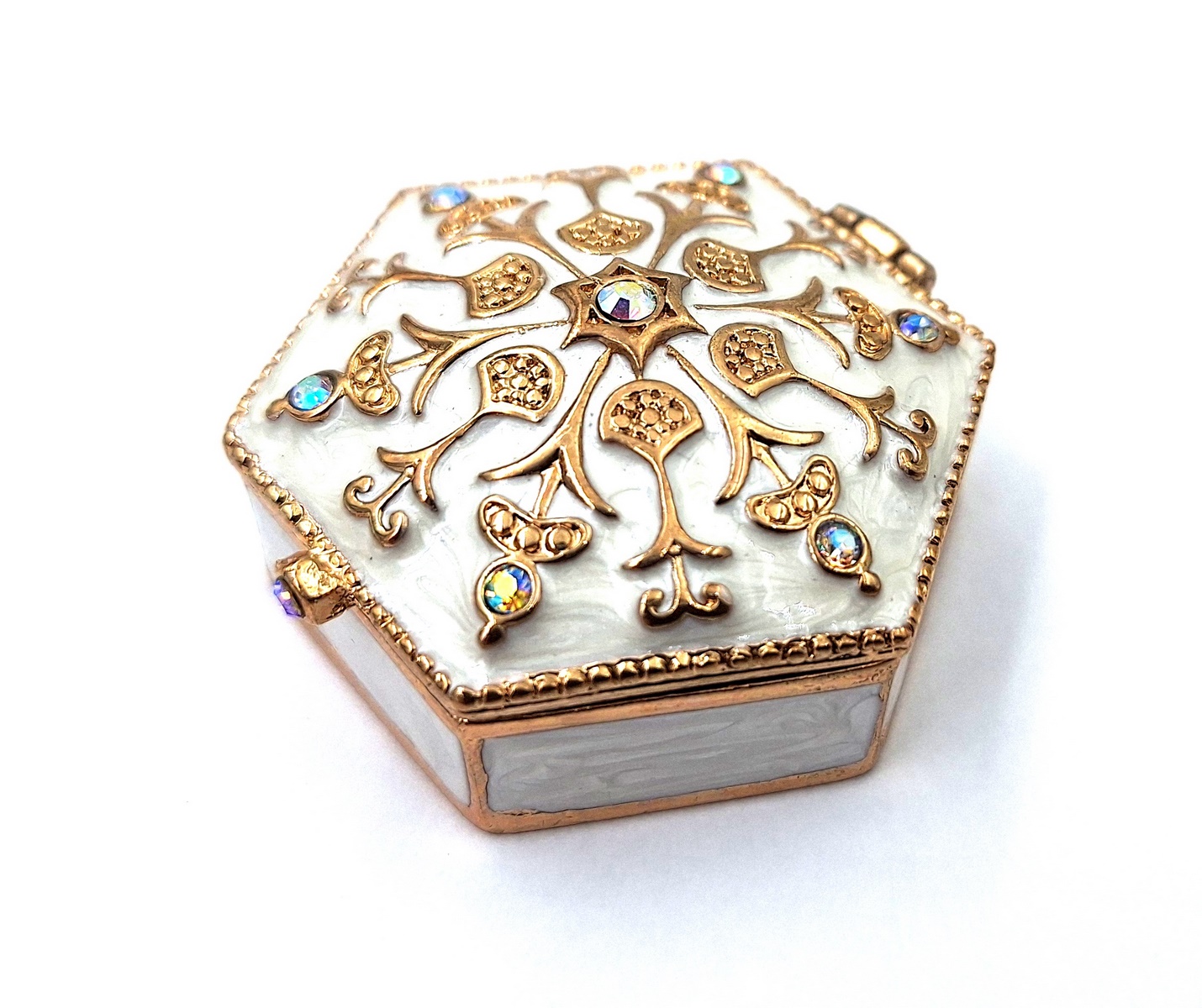 •Piękne bogato zdobione biało-złote pudełko (otwierane) z kryształkami