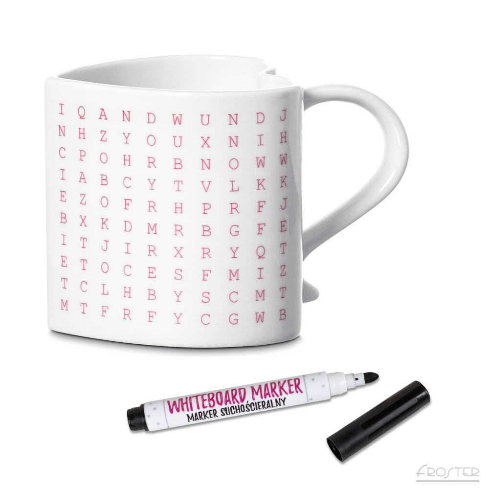 Jeśli chcesz w niebanalny sposób przekazać osobie, na której Ci zależy, miłą wiadomość, zaparz jej ulubioną herbatę lub kawę w Zaskakującym Kubeczku – Wykreślance. Ciepły napój ogrzeje jej ręce, natomiast nadrukowana na nim wiadomość – niespodzianka trafi prosto do jej serca.